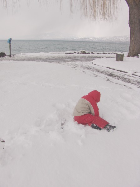 DSC03685 Thomas playing in the snow on the lakeside in Villeneuve (VD, Switzerland) |